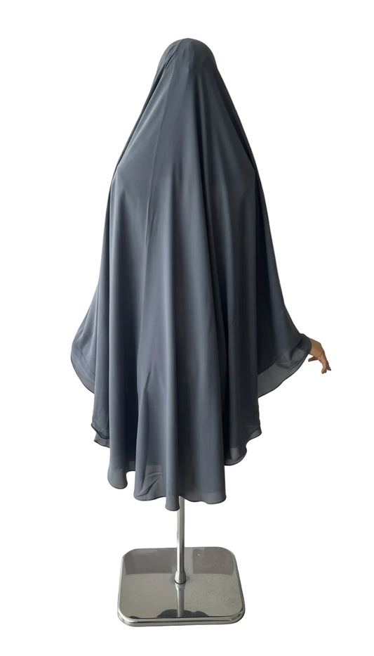 Khimar Nema: Grey, Medium Length, Open-Neck & Flap Design