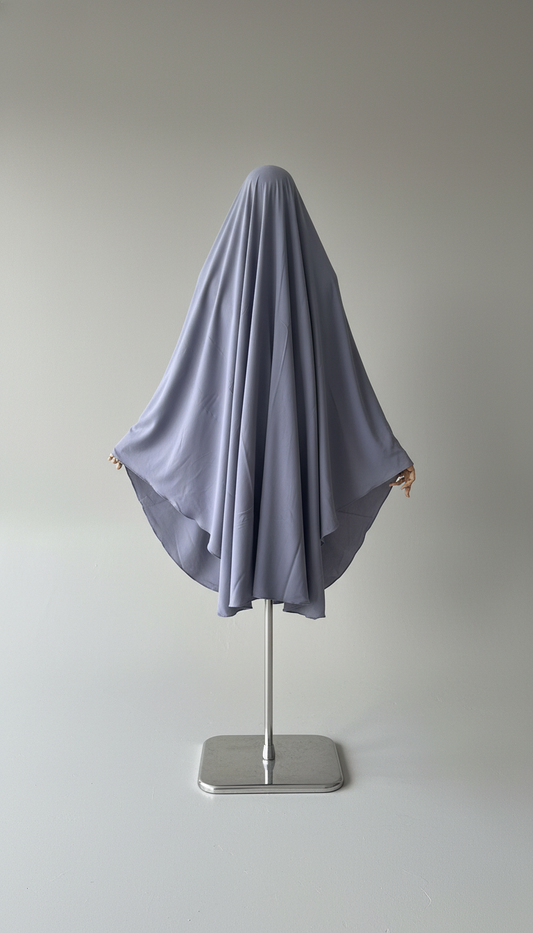 Khimar Nema: Violet Grey, Medium Length, Open-Neck & Flap Design