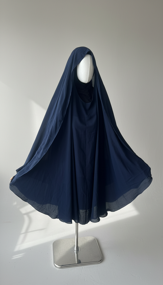 Khimar Nema: Navy, Medium Length, Open-Neck & Flap Design