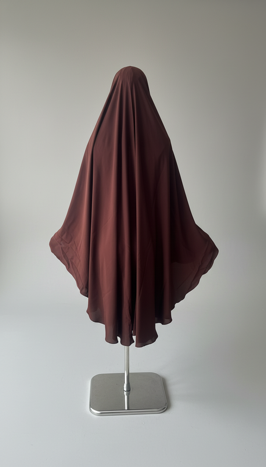 Khimar Nema: Brown, Medium Length, Open-Neck & Flap Design